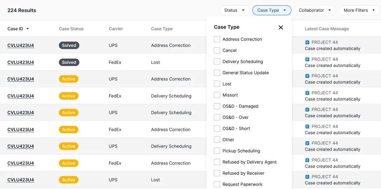 Gérez efficacement les défis, résolvez les problèmes rapidement et maintenez le bon fonctionnement des opérations avec la création de cas automatisée pour les dommages, les retours, les adresses incorrectes et les exceptions.
